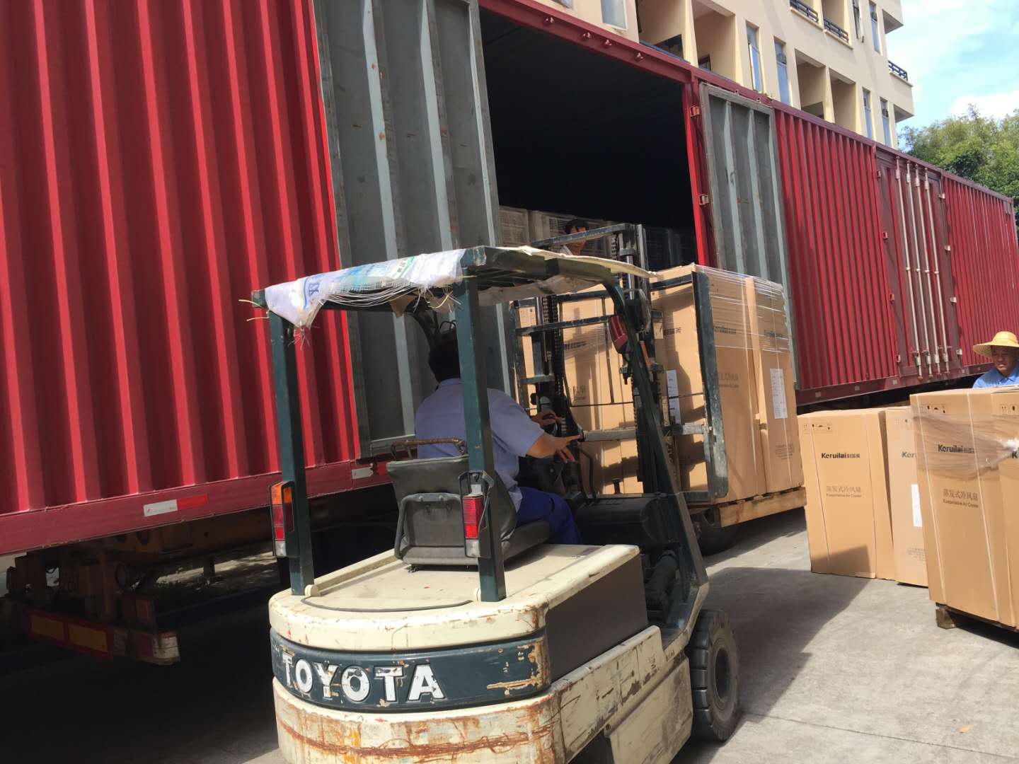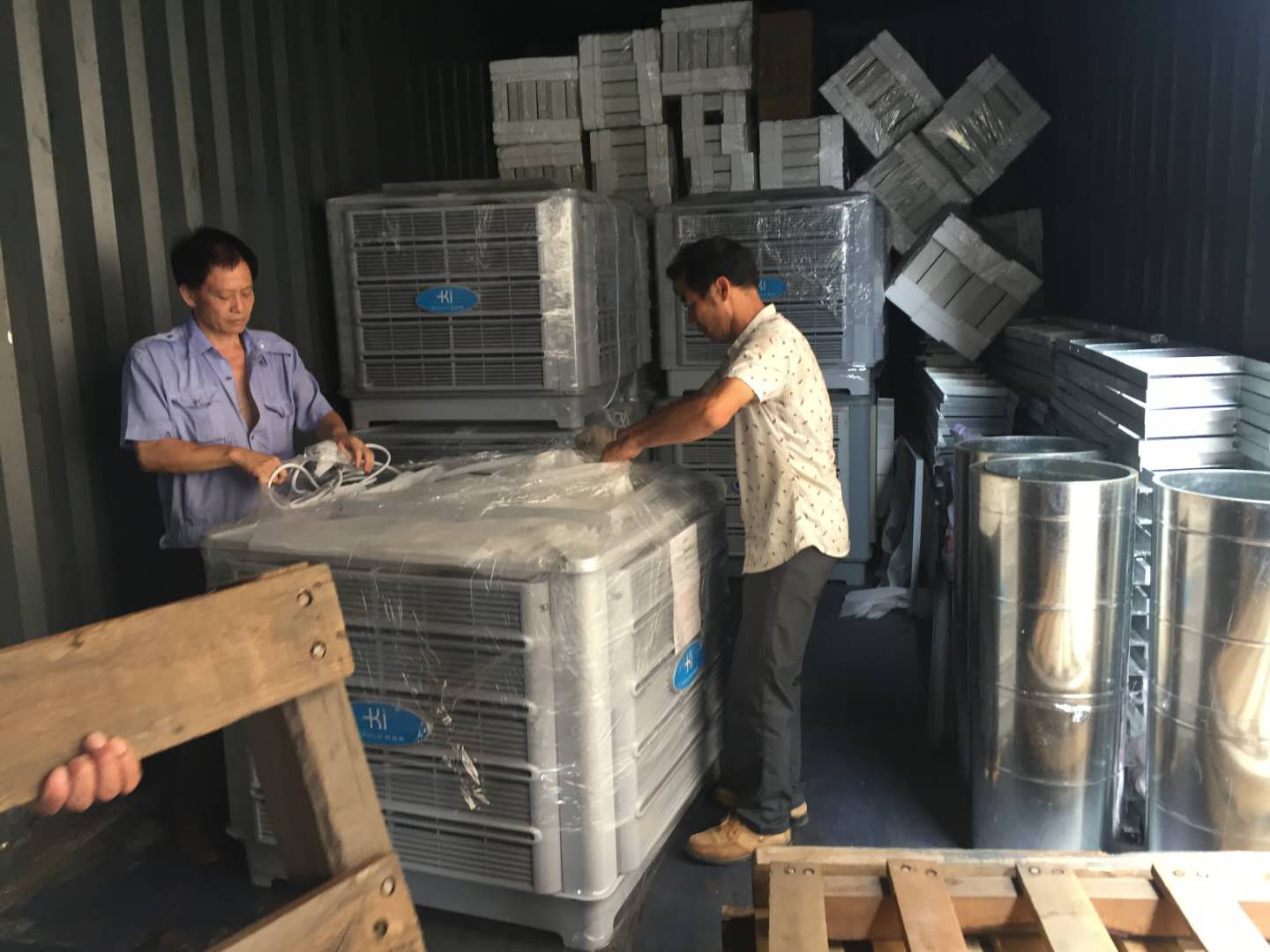 22.5米車廂整整一車科瑞萊工業(yè)環(huán)保冷風(fēng)機(jī)空調(diào)KD18機(jī)器整裝待發(fā),謝謝客戶對(duì)我們科瑞萊品牌的信任與支持。